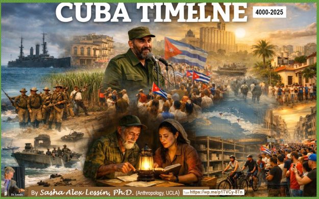 by Sasha Alex Lessin, Ph.D. (Anthropology, UCLA) Click the arrow and hear the show as you peruse pix below. Homo Sapiens from the planet Nibiru brought Cain’s descendants, African technicians and Semitic Overseers across the Pacific to South America, then Central America  Descendants of Cain–the “Indians”–ie, the Beardless Ones–crossed the landbridge between Siberia and Alaska met …